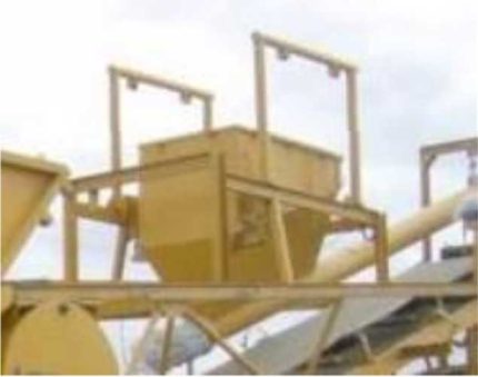 DOSIFICADORA DE HORMIGON.- Dosificadora de agregados con cuatro tolvas de agregados, balanza de agregados, balanza de cemento, dosificadora de agua por volumen, cintas transportadoras de goma, sistema de apertura y cierre neumático, celdas de carga, tornamesa para transporte, completamente automatizada, con sistema de control por software para computadora.