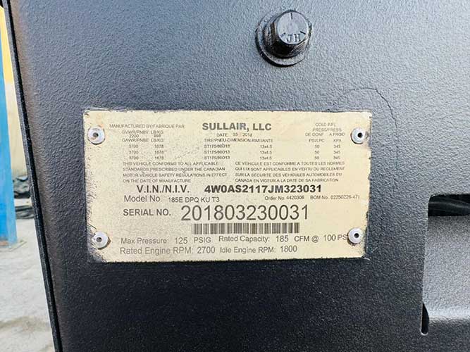 Sullair 185 Compresor de Aire año 2018